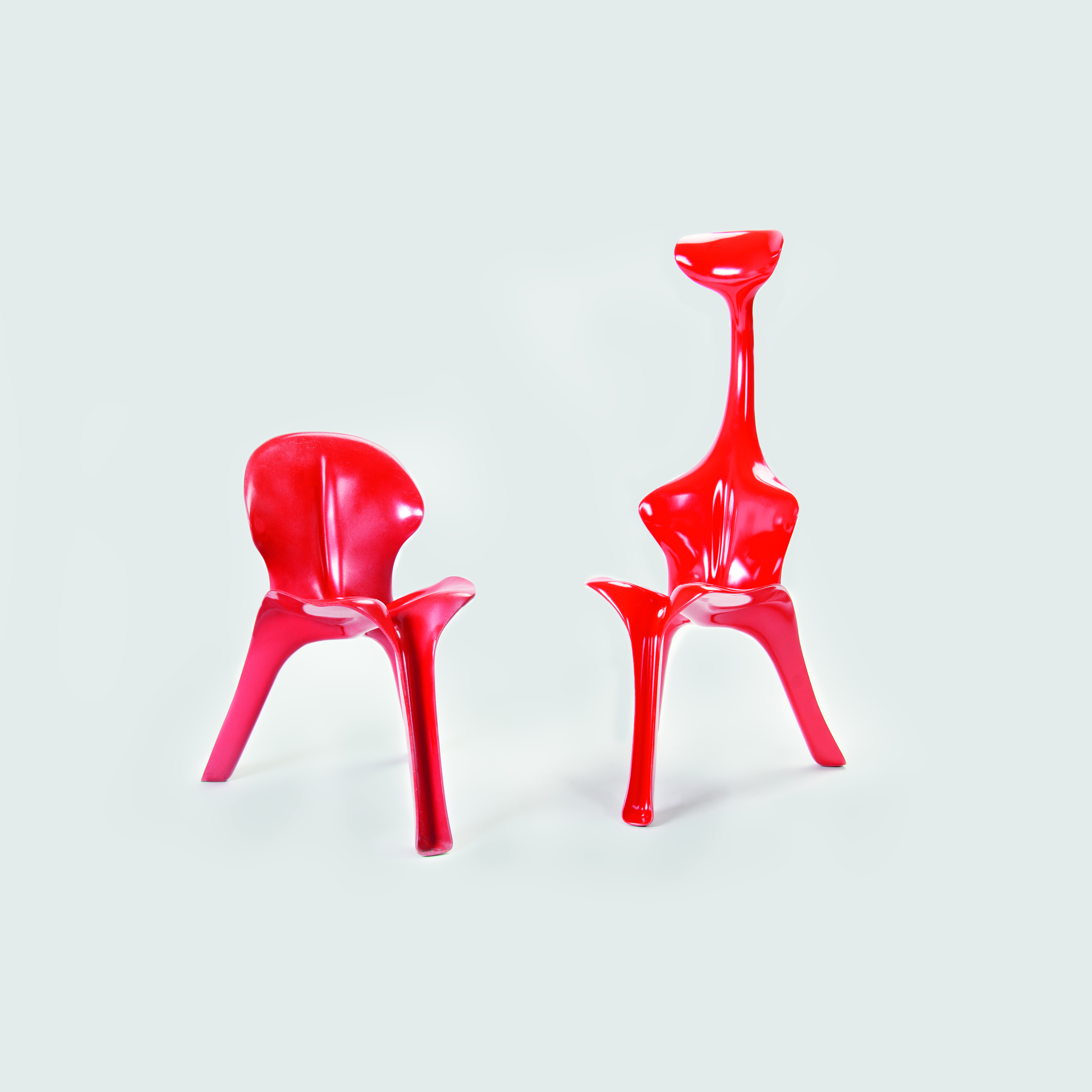 Cette chaise qui marque une rupture radicale avec le passé est devenue l’icône d’une époque. Le designer bouscule les traditions en remplaçant la forme traditionnelle de la chaise à 4 pieds et en oubliant la noblesse de la matière,